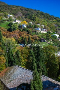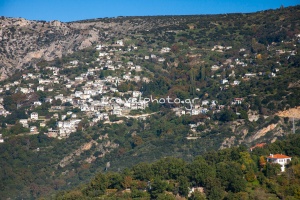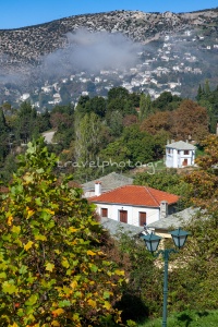 Makrinitsa, eine absolut geschützte traditionelle Siedlung, ist fast senkrecht an einem grünen Hang des Pelion oberhalb von Volos gebaut, was den großen Höhenunterschied zwischen den ersten Häusern des Dorfes im Bezirk Koukourava und den höher gelegenen Häusern erklärt.