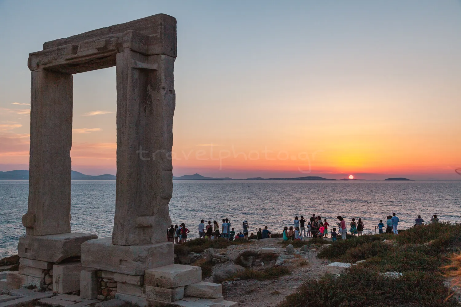 Go down the coastal road of the country and if the sunset is approaching, climb up to the islet of Palatia, on the left of the harbour where the most famous monument of Naxos, Portara, dominates. It is a very large and marble gate of the temple of Apollo that was started to be built in the 6th century BC by the tyrant of Naxos Lygdami but was never completed.