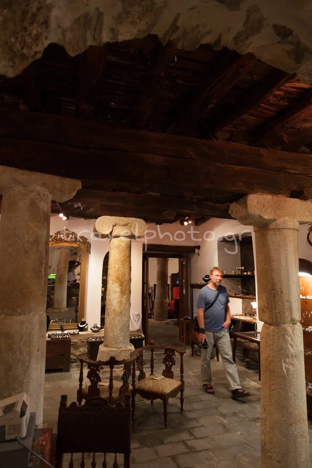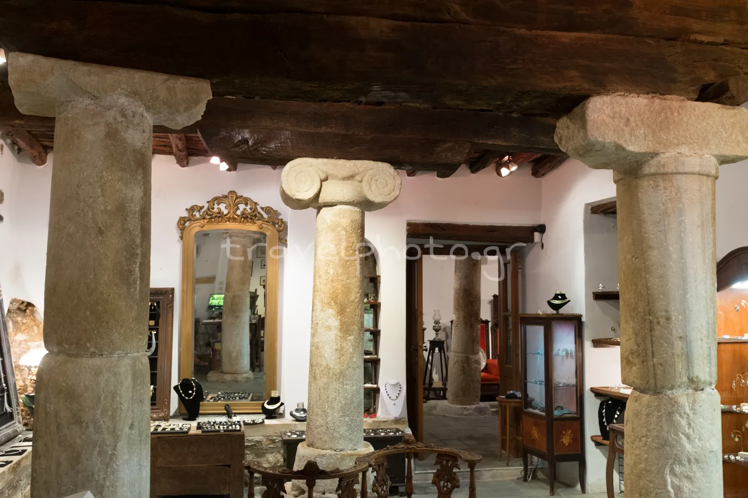 One such typical and highly impressive example of Archaic period (6th century BC) columns can be seen in the photos at the end of the article, where an antique shop is supported by these ancient columns over 2,500 years old!