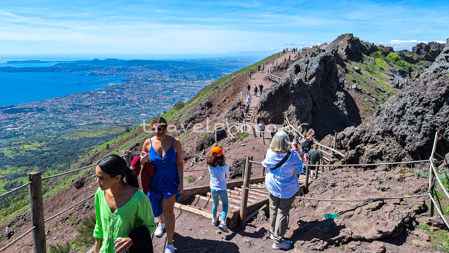 Climbing up the path of black volcanic ash towards the crater you will have the opportunity to admire the view of the city of Naples and the famous cosmopolitan island of Capri and after entering the area around the crater you will have a view of the entire Gulf of Naples with the plain where ancient Pompeii is located as well as smaller towns such as Torre del Greco where we ate excellent seafood at good prices on our way back from Pompeii.