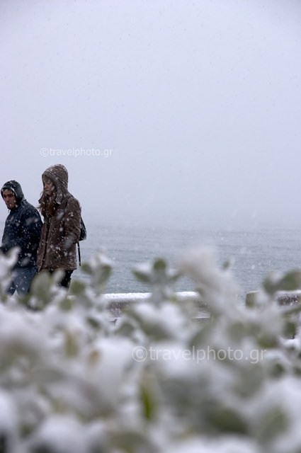 The next morning, the 13th of February, everything was frozen, the temperature in the south was below zero and people of course did not miss the opportunity for a unique walk in the snowy parks and pedestrian streets next to the steaming sea of the Saronic Gulf.