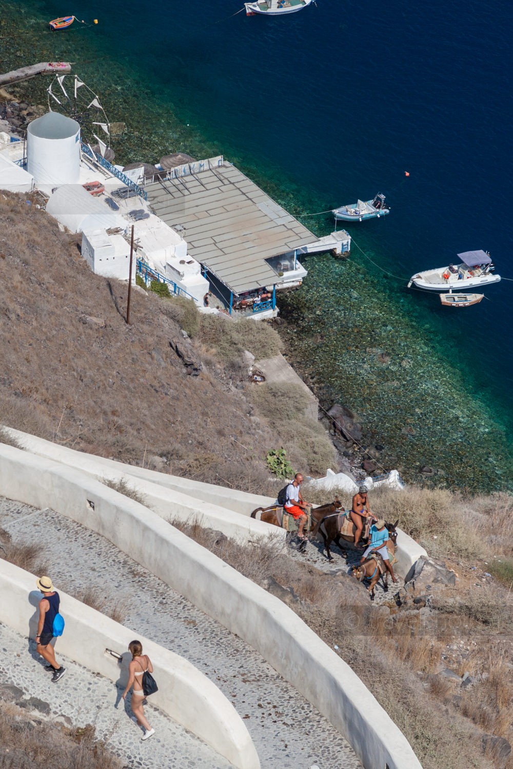 Bien sûr, ce désagrément fait partie de l’expérience qu’offre Santorin et je ne discute pas des multiples avantages d’une telle activité physique. Ne la tentez pas si vous n’avez pas mangé un peu avant dans certaines tavernes de Korfos, si vous ne vous sentez pas bien ou si vous n’êtes pas en relativement bonne condition physique. Vous pouvez également monter sur un âne (photo).